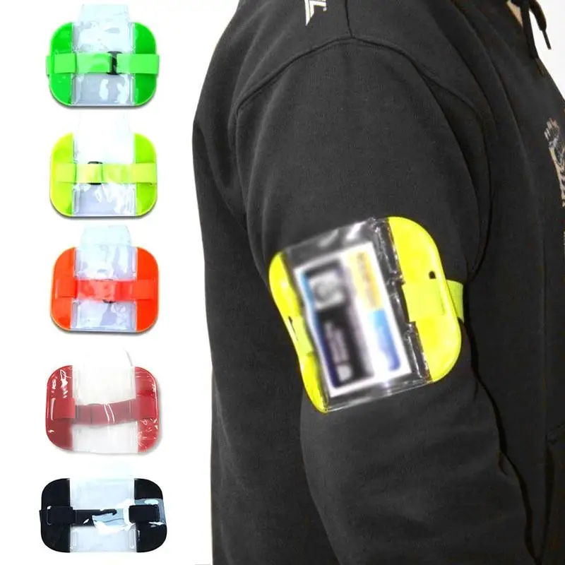 Name: Nueva correa elástica ajustable titular de la tarjeta caliente elástico placa bolsa brazo crédito de la foto ID de PVC banda funda, soporte tarjeta brazalete C2R6